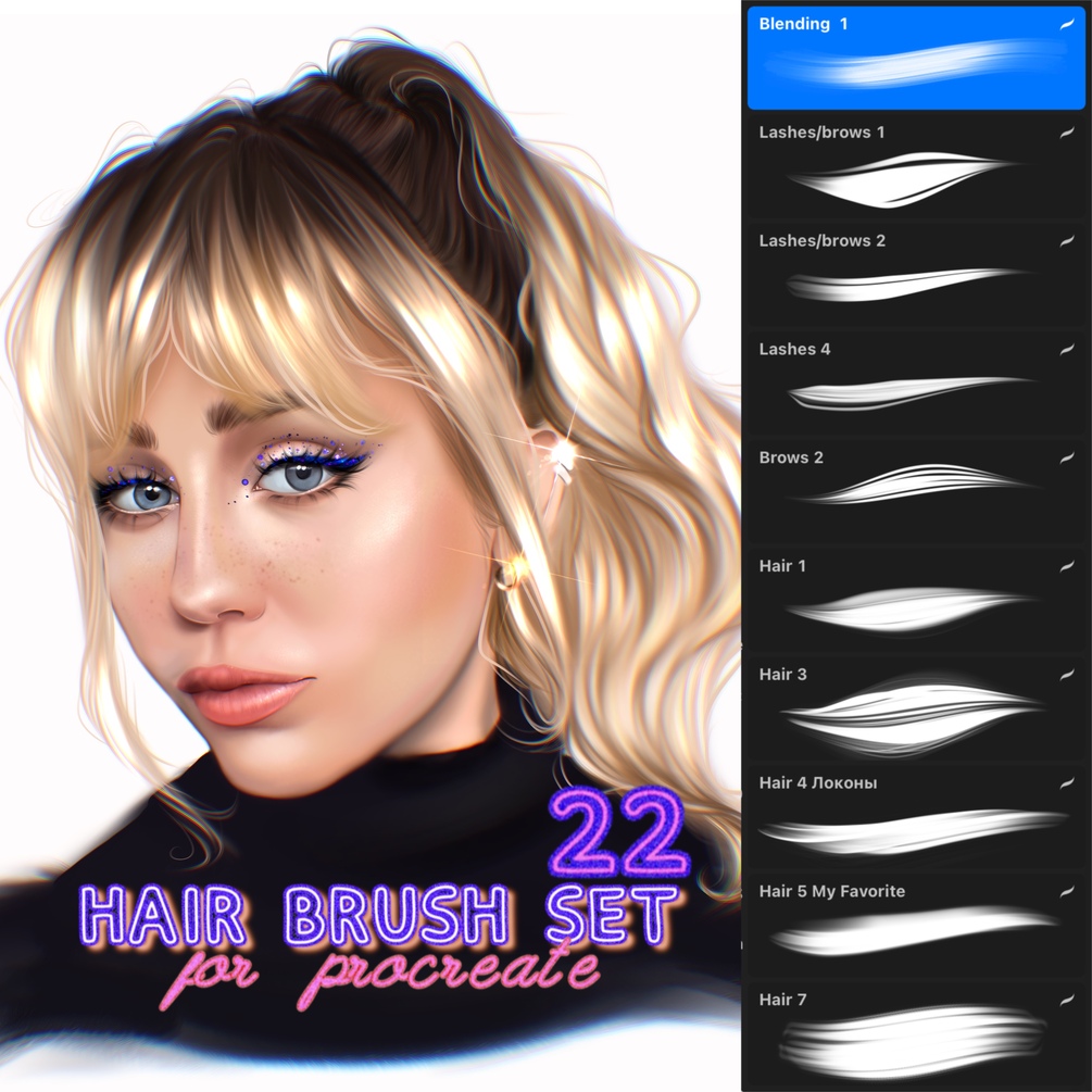 22 realistic hair brushes for Procreate 🔥🔥🔥